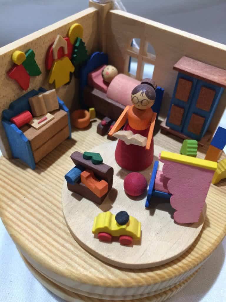 Juguetes de madera didácticos para fomentar la fantasía de los niños. Así como un sin fin de cajas de música.